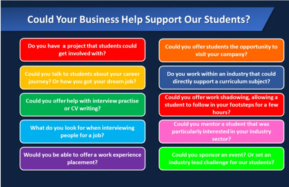 We have very strong links with local businesses who provide invaluable support and opportunities to enhance our broad and balanced curriculum. We are also always delighted to hear from new contacts, alumni or businesses who would be interested in working with us. Please contact Mrs Sam Swain via email on sswain@stamfordwellandacademy.org