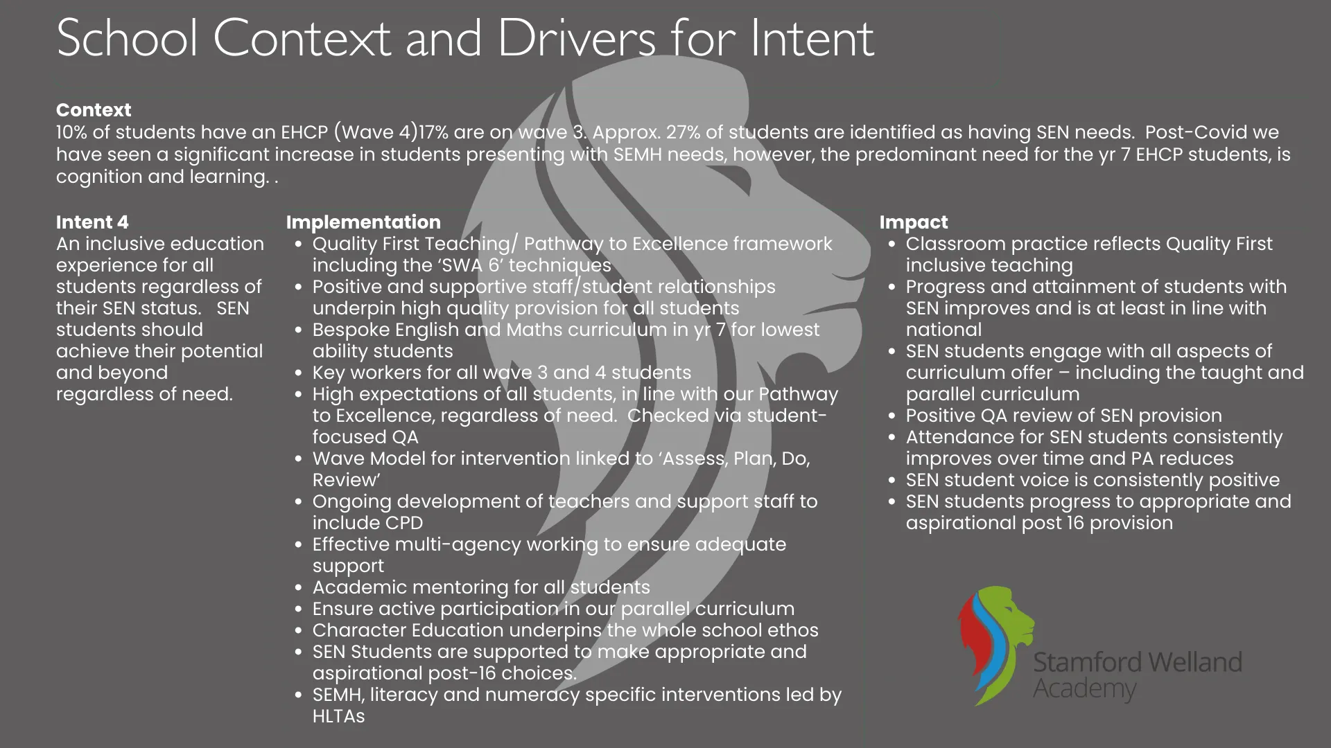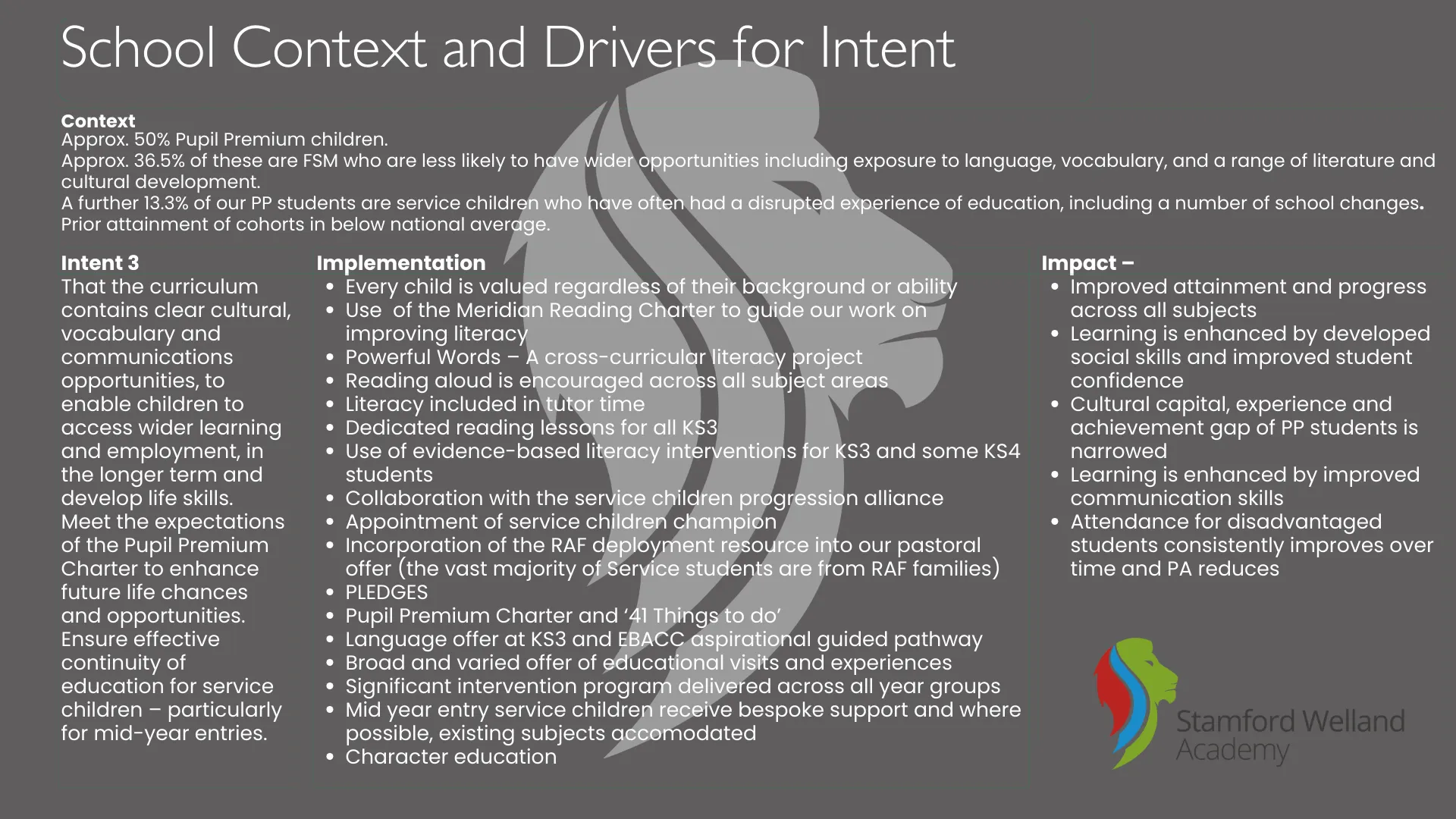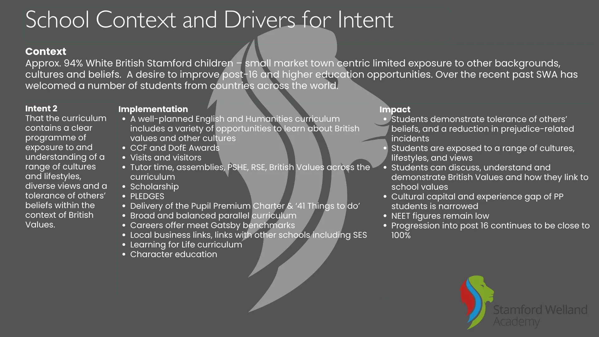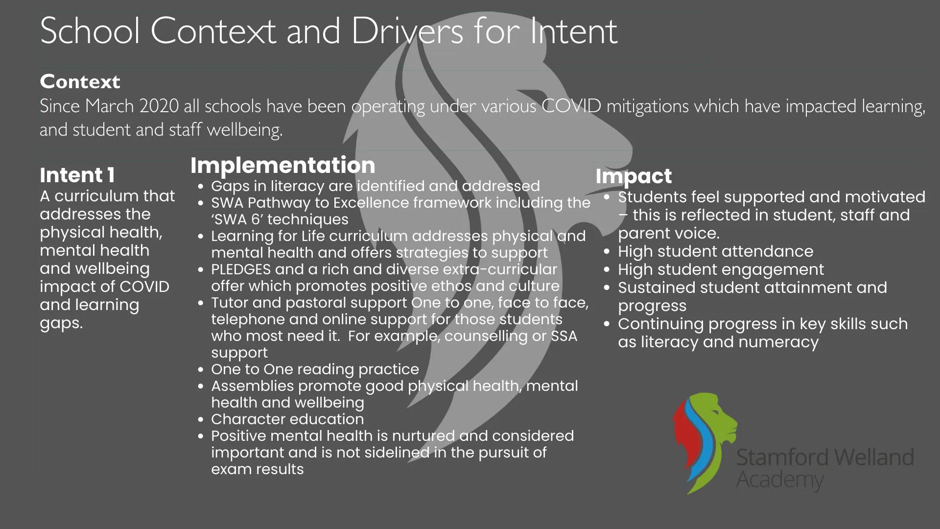 We have an uncompromising commitment to ensure that every child achieves their academic potential at Stamford Welland Academy. Our curriculum has been carefully designed to secure the best possible outcomes for our students and to create well-rounded and cultured individuals. Meridian Trust has developed systems and capacity to support learning, the key elements are: